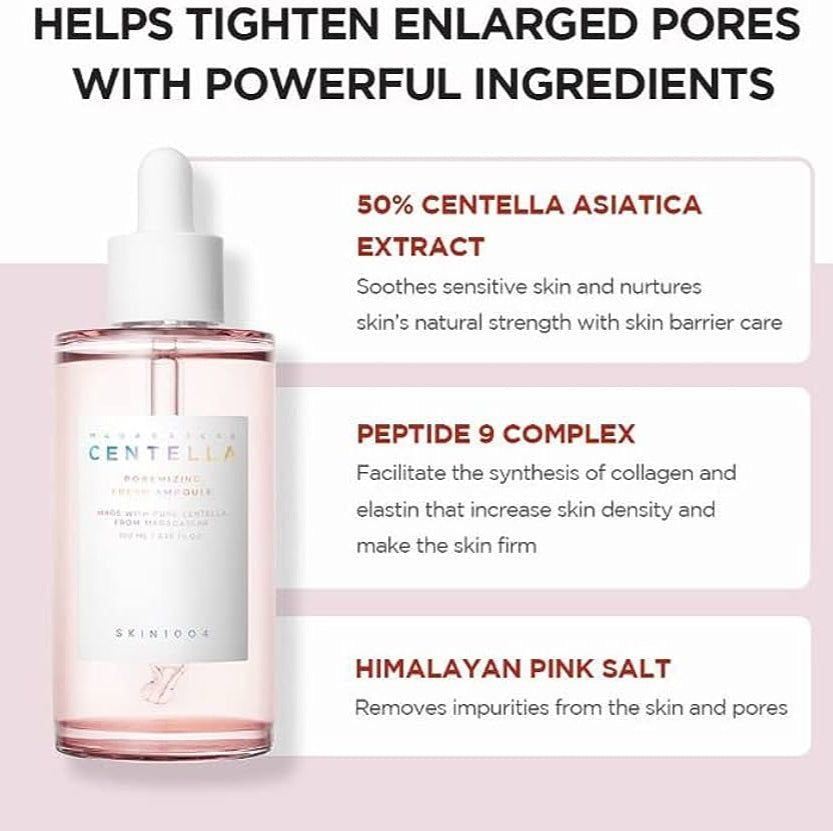 The SKIN1004 Madagascar Centella Poremizing Fresh Ampoule is a lightweight, fast-absorbing serum designed to refine pores and soothe the skin. Infused with pure Centella Asiatica extract from Madagascar, this ampoule helps control excess sebum, tighten pores, and provide deep hydration without clogging the skin. Its fresh, non-sticky formula makes it ideal for oily, combination, and acne-prone skin types.