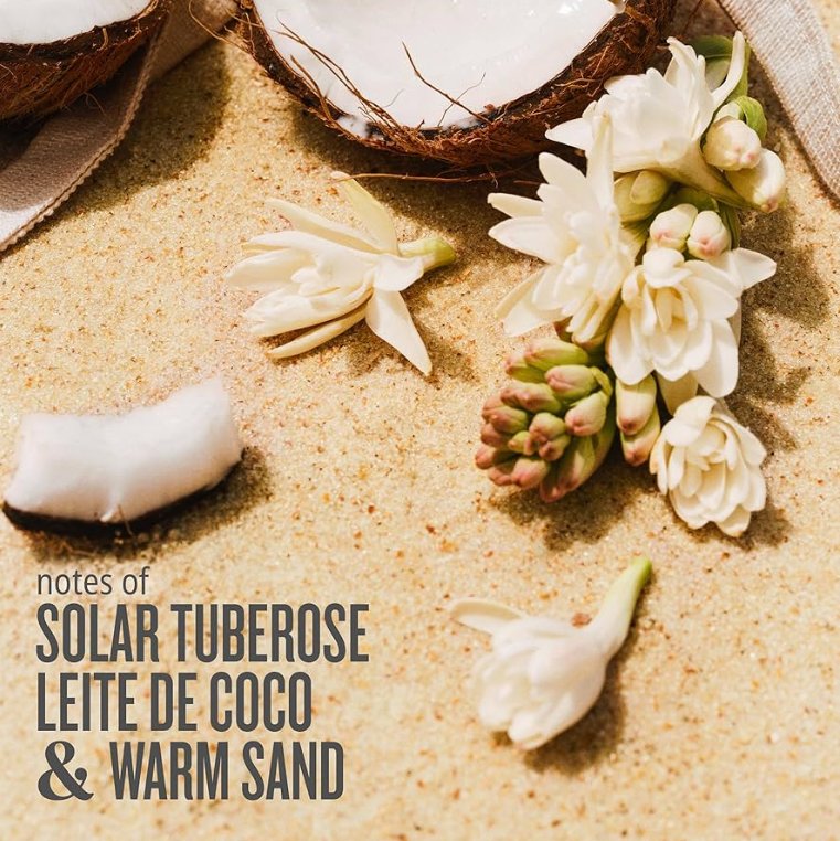 The epitome of summer nostalgia, this fragrance is centred around a heart of heady floral solar tuberose and ylang ylang. It opens with leite de coco (AKA sweet coconut) and hints of warm sand, which is then anchored by notes of creamy vanilla and sensual amber essence for a fragrance that lingers all day.